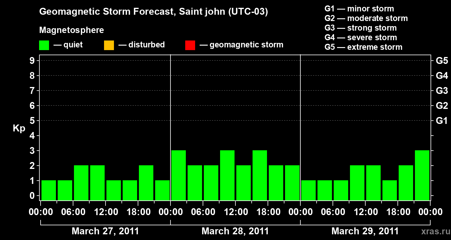 Geomagnetic storm forecast in Saint john for Mar 27, 2011