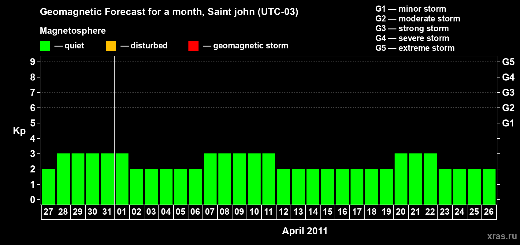 Geomagnetic activity forecast in Saint john — Mar 27, 2011