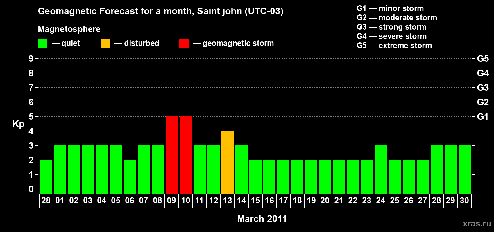 Geomagnetic storm forecast in Saint john for Feb 28, 2011