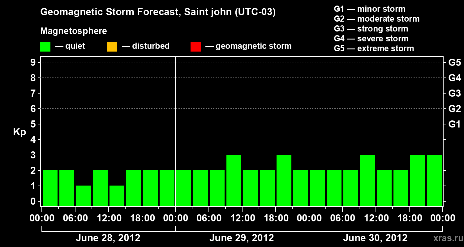 Geomagnetic storm forecast in Saint john for Jun 28, 2012