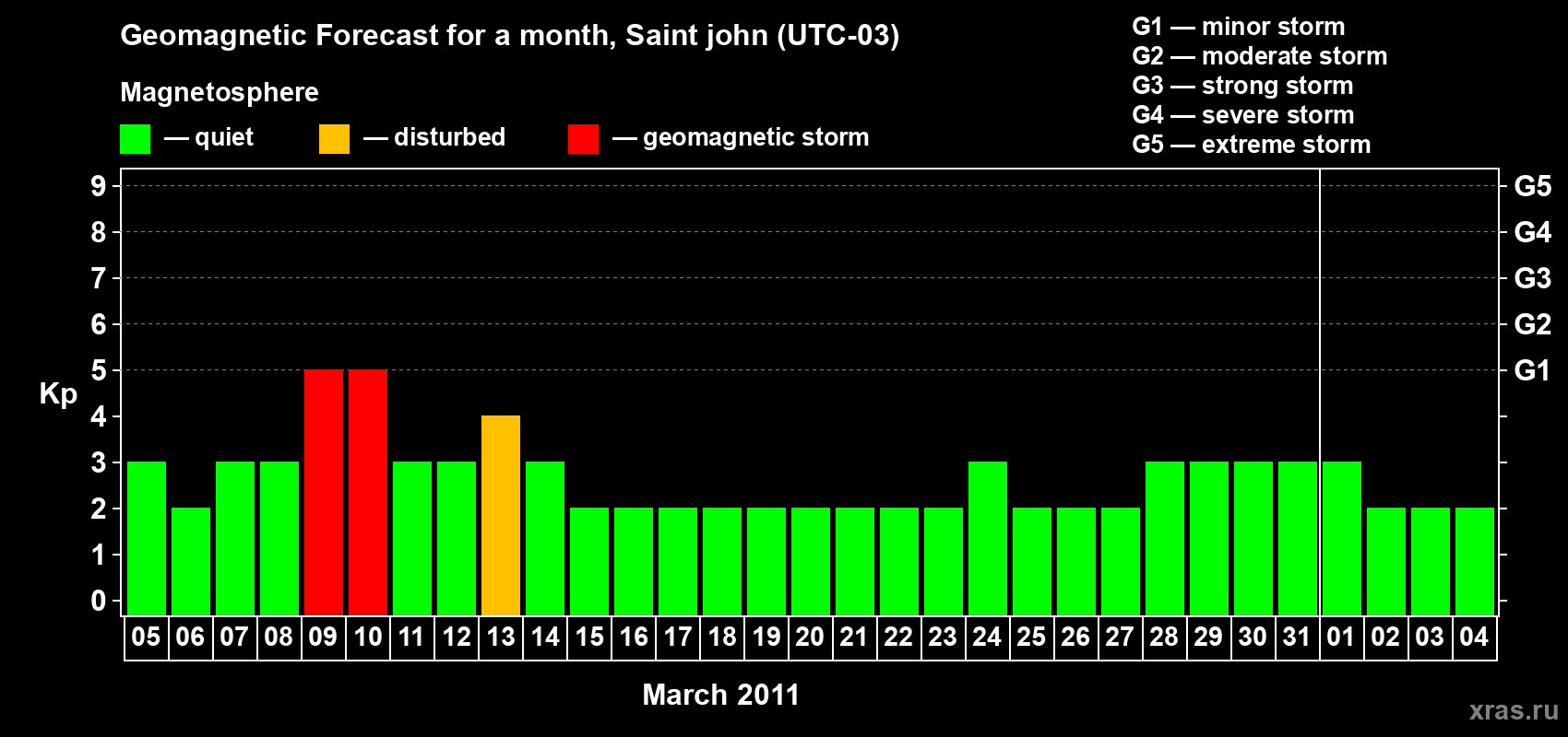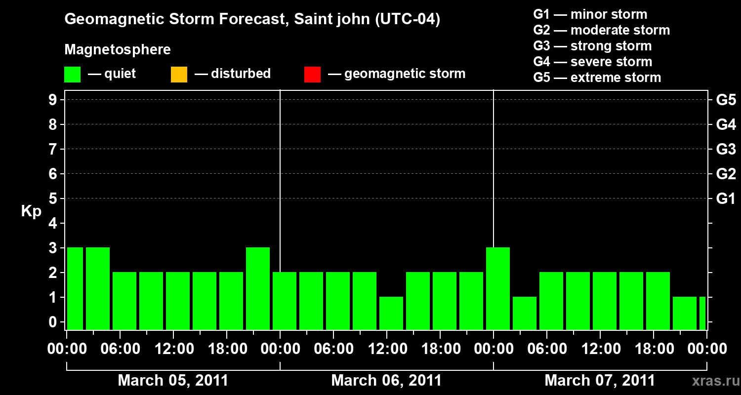 Geomagnetic storm forecast in Saint john for Mar 05, 2011