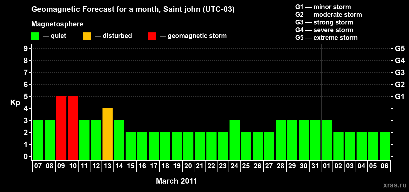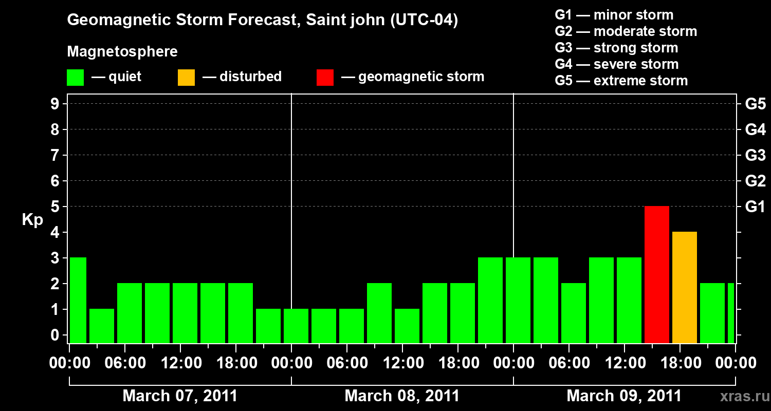 Geomagnetic storm forecast in Saint john for Mar 07, 2011