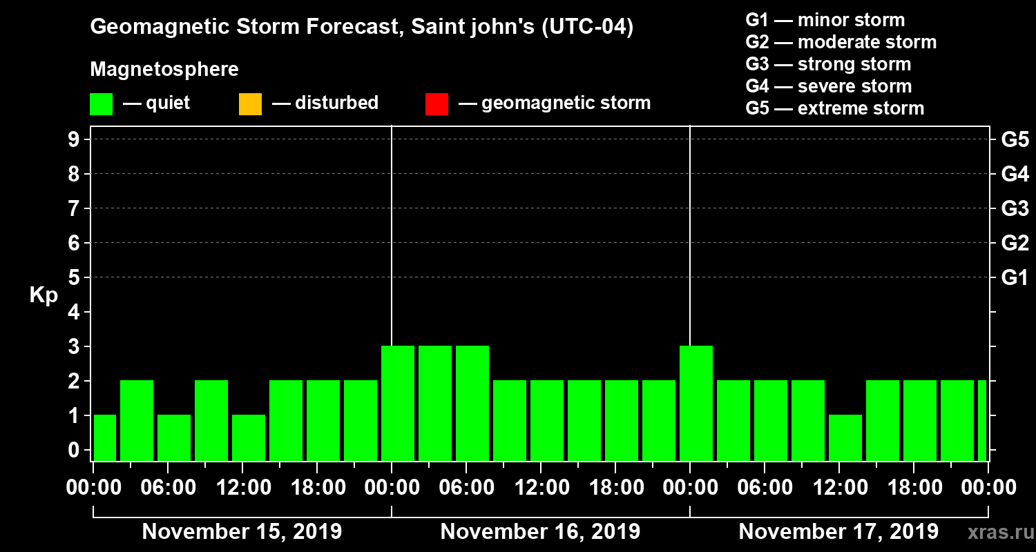 Geomagnetic storm forecast in Saint john's for Nov 15, 2019