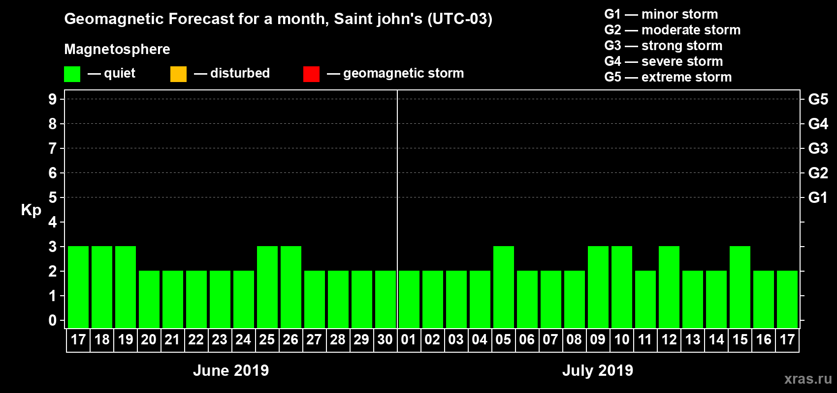 Geomagnetic storm forecast in Saint john's for Jun 17, 2019