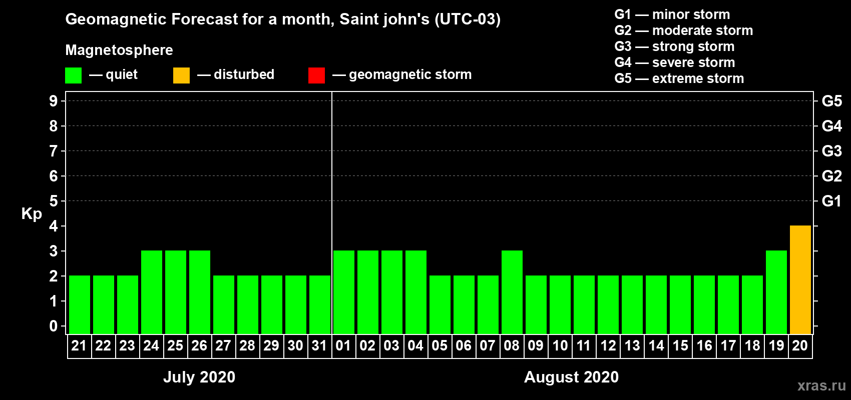 Geomagnetic storm forecast in Saint john's for Jul 21, 2020