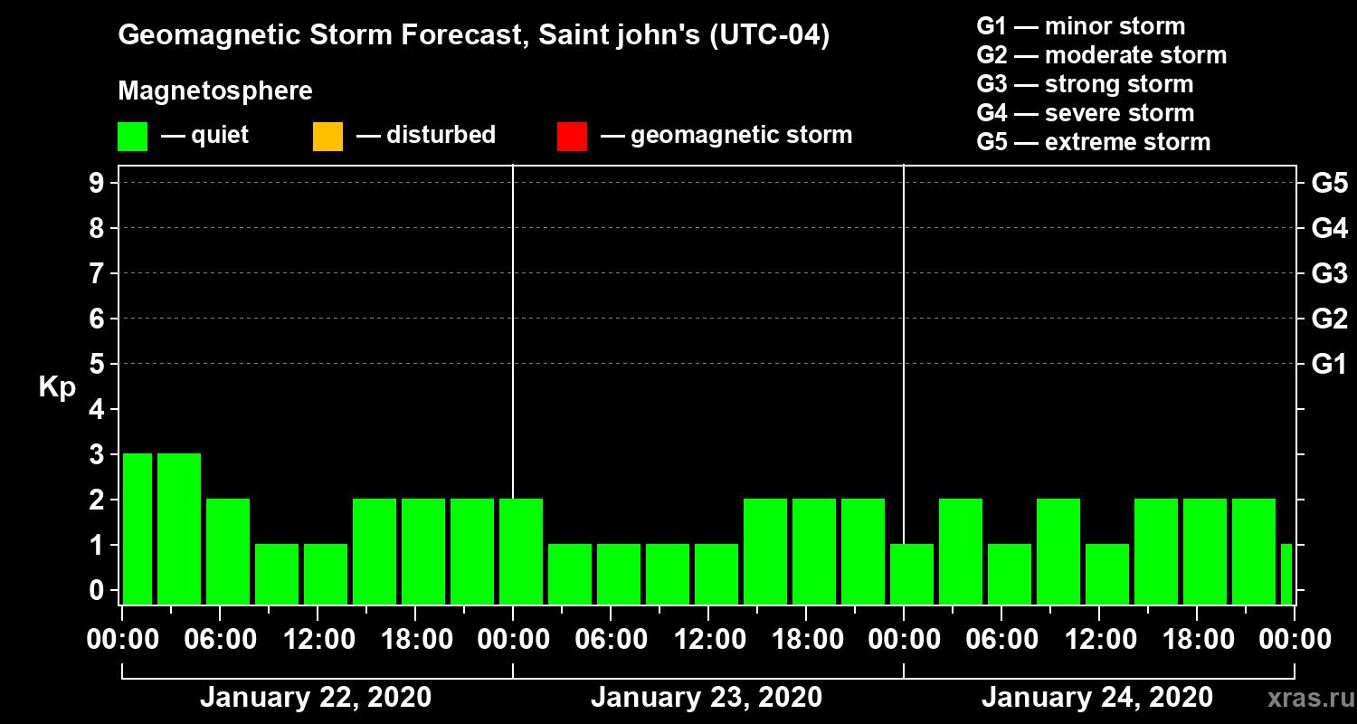 Geomagnetic storm forecast in Saint john's for Jan 22, 2020