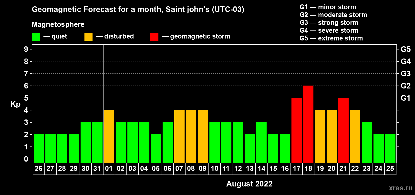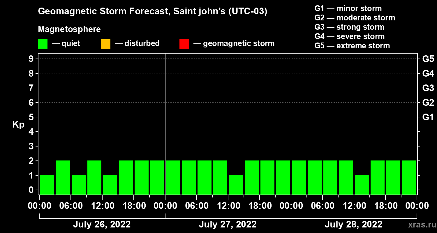 Geomagnetic storm forecast in Saint john's for Jul 26, 2022