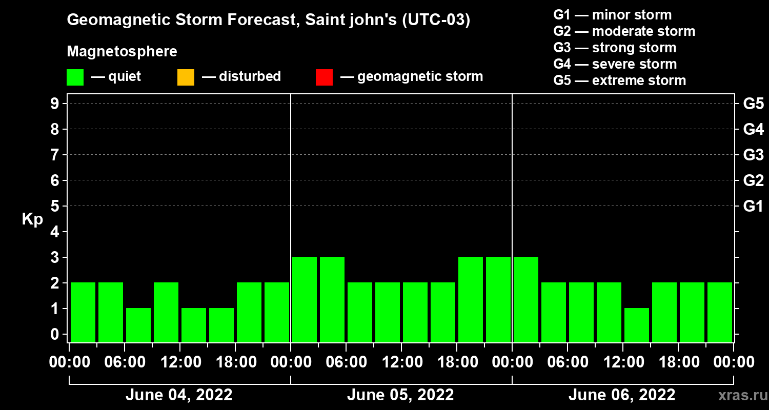 Geomagnetic storm forecast in Saint john's for Jun 04, 2022