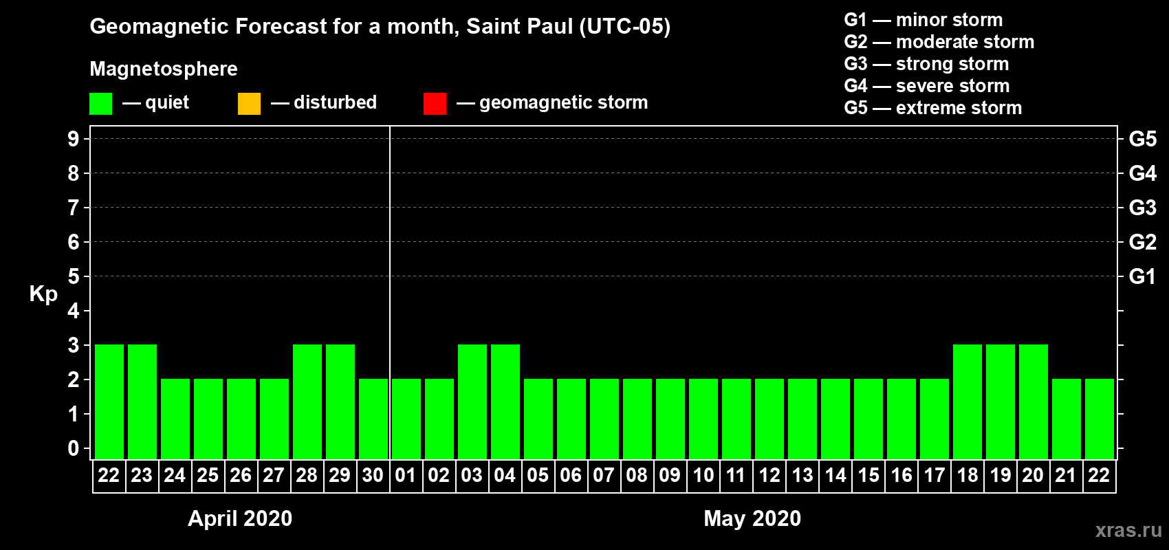 Geomagnetic storm forecast in Saint Paul for Apr 22, 2020