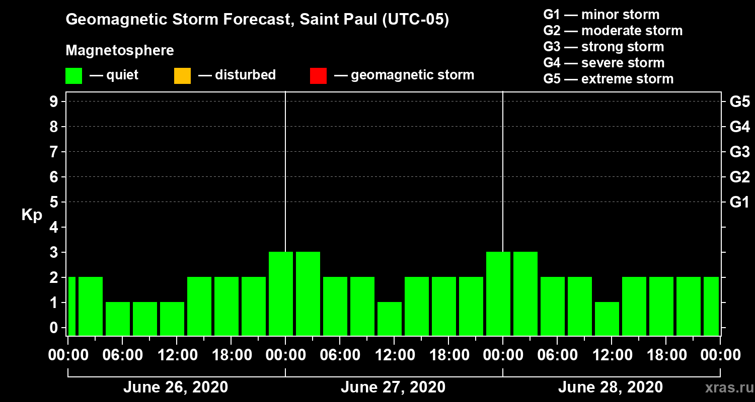 Geomagnetic storm forecast in Saint Paul for Jun 26, 2020