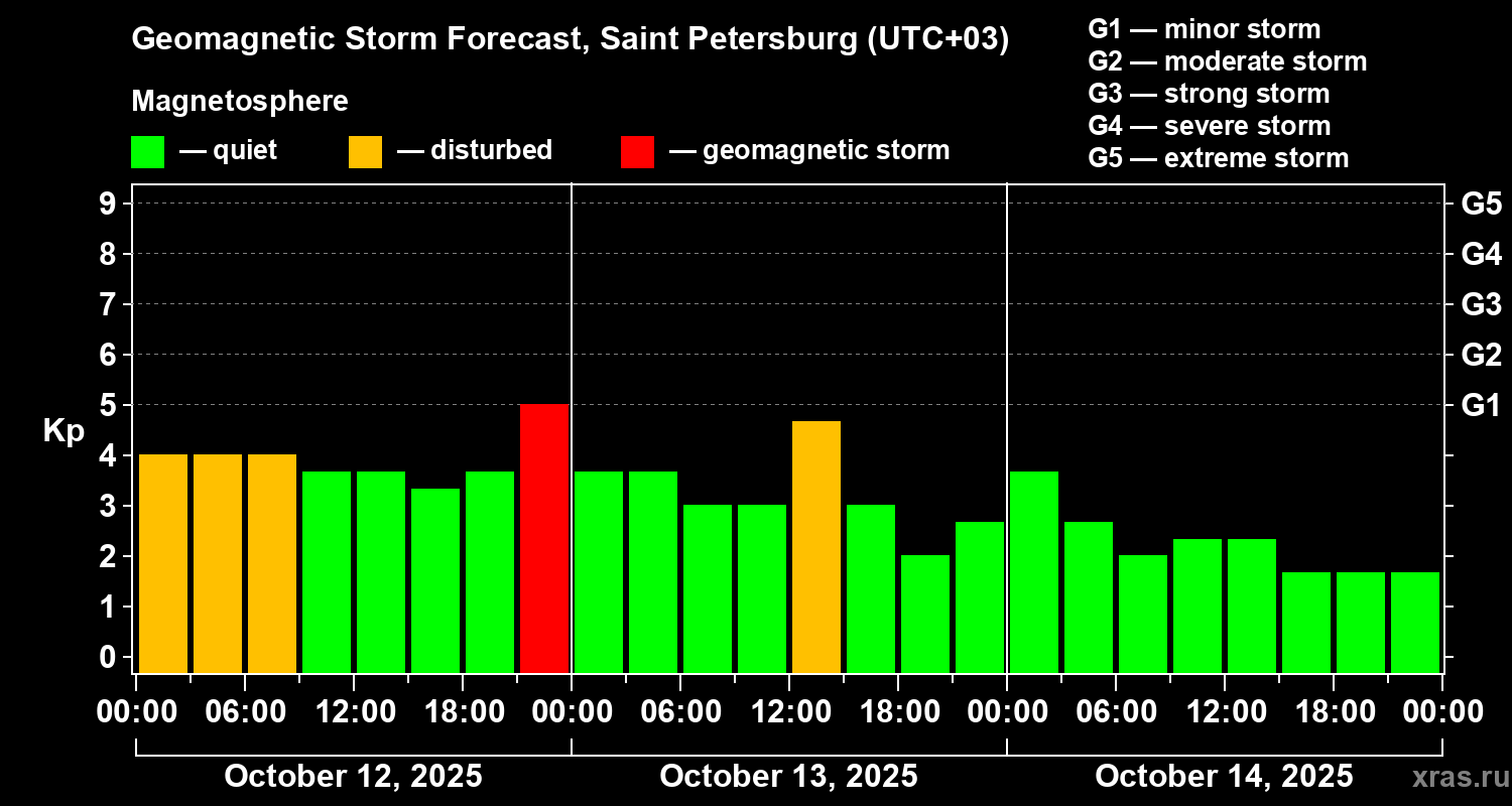 Geomagnetic storm forecast in Saint Petersburg for Oct 12, 2025