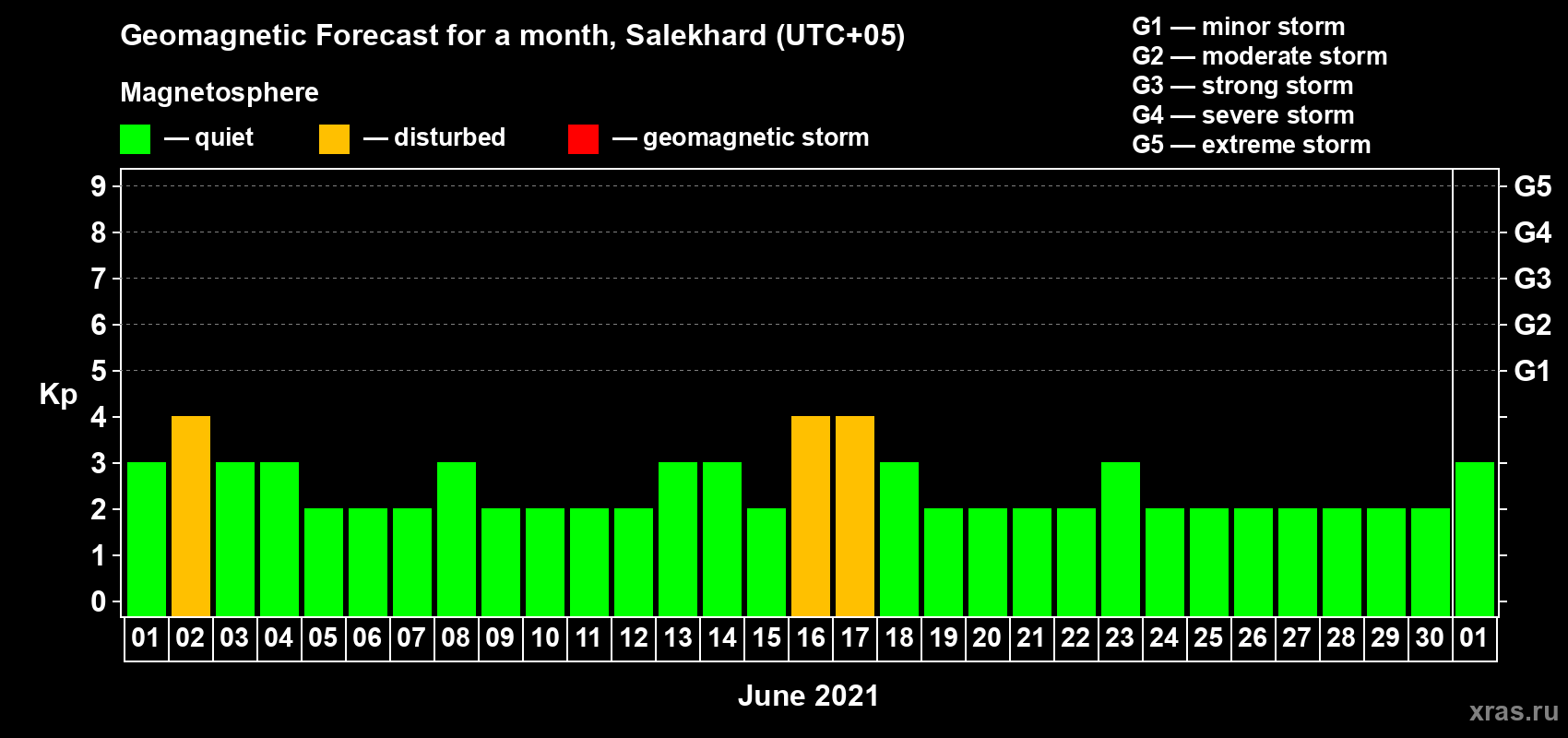 Geomagnetic storm forecast in Salekhard for Jun 01, 2021