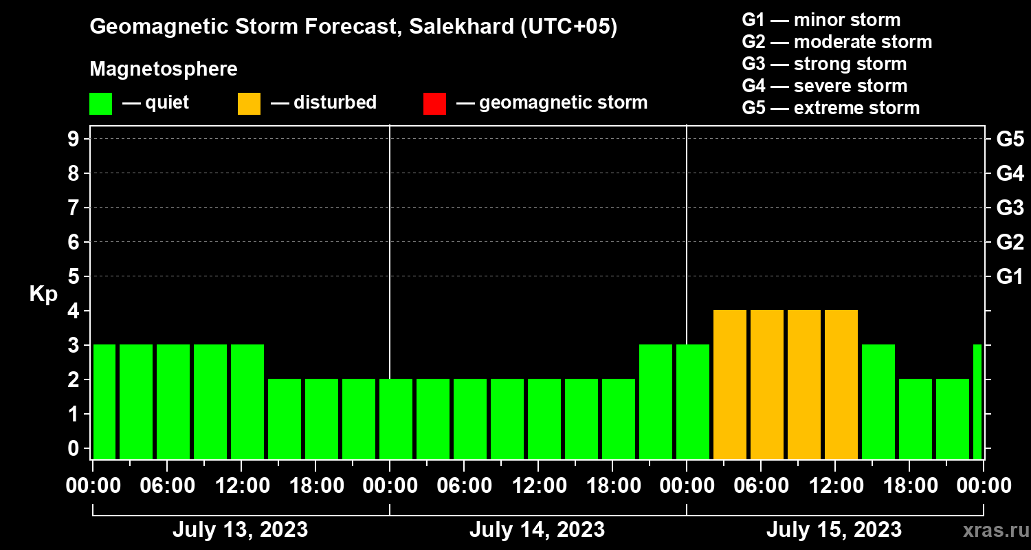 Geomagnetic storm forecast in Salekhard for Jul 13, 2023