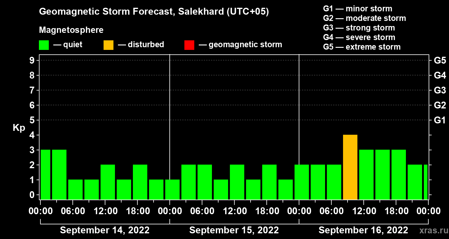 Geomagnetic activity forecast in Salekhard — Sep 14, 2022