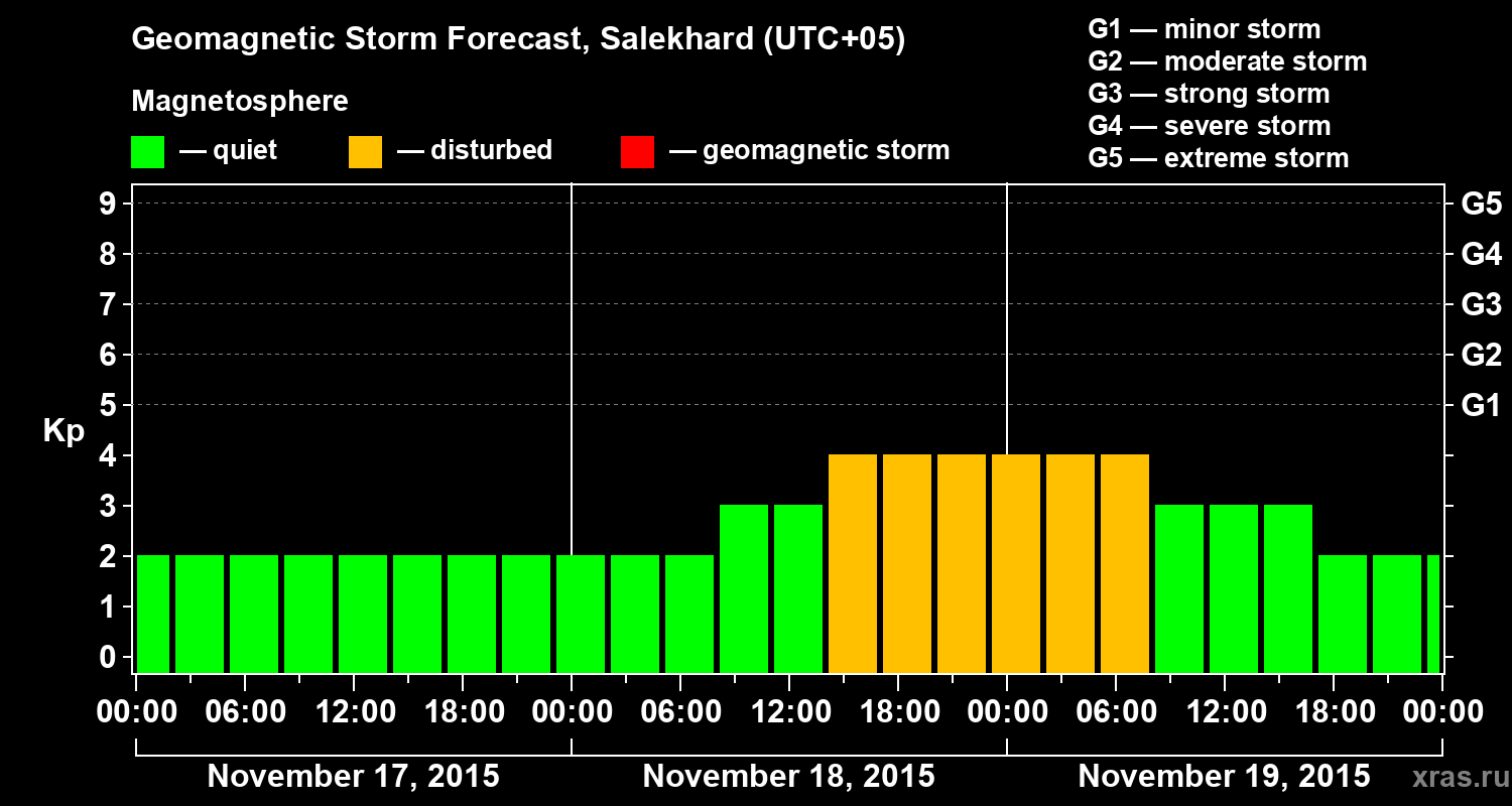 Geomagnetic activity forecast in Salekhard — Nov 17, 2015