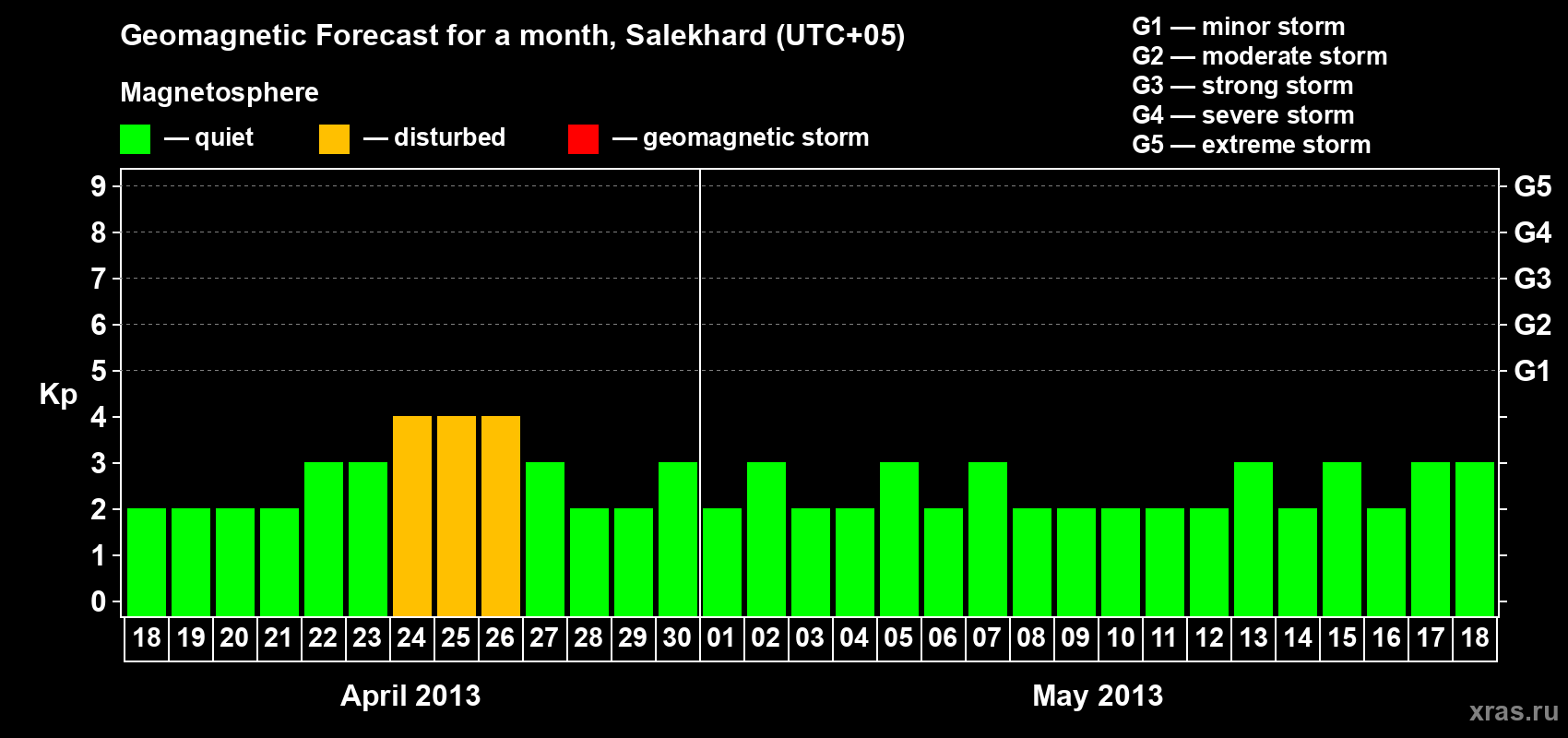 Geomagnetic storm forecast in Salekhard for Apr 18, 2013