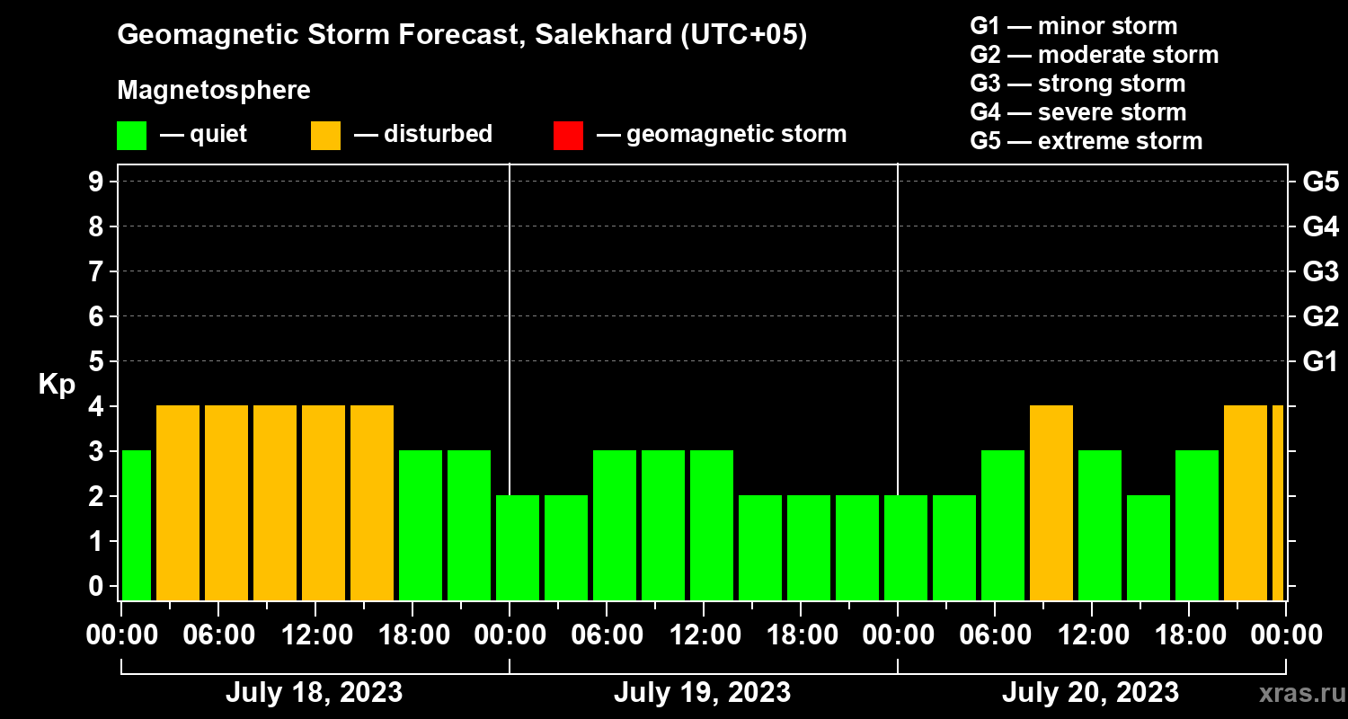 Geomagnetic storm forecast in Salekhard for Jul 18, 2023