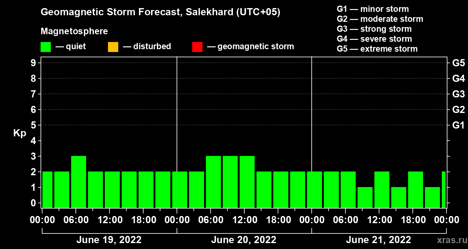 Geomagnetic storm forecast in Salekhard for Jun 19, 2022