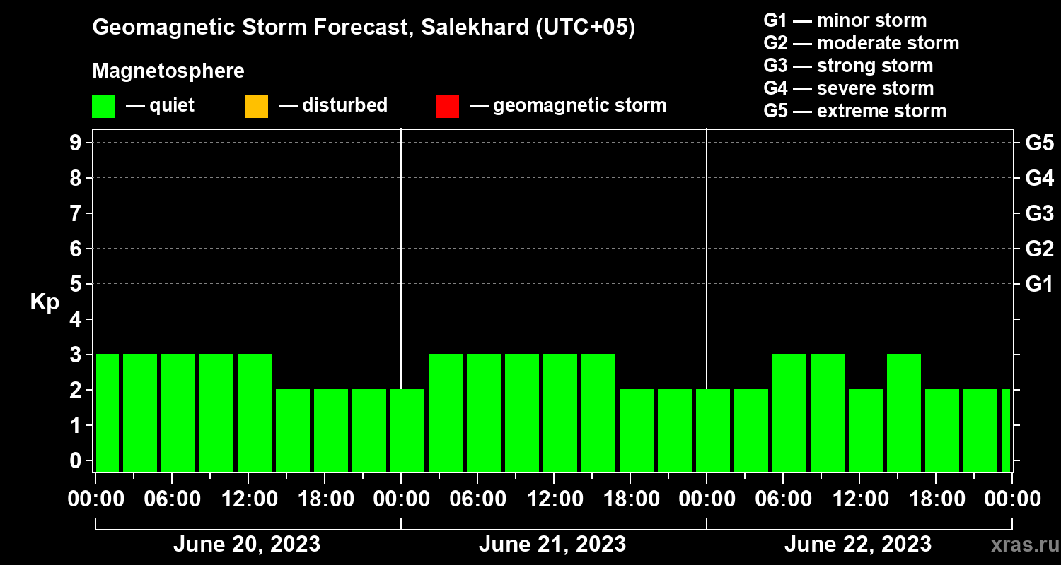 Geomagnetic storm forecast in Salekhard for Jun 20, 2023