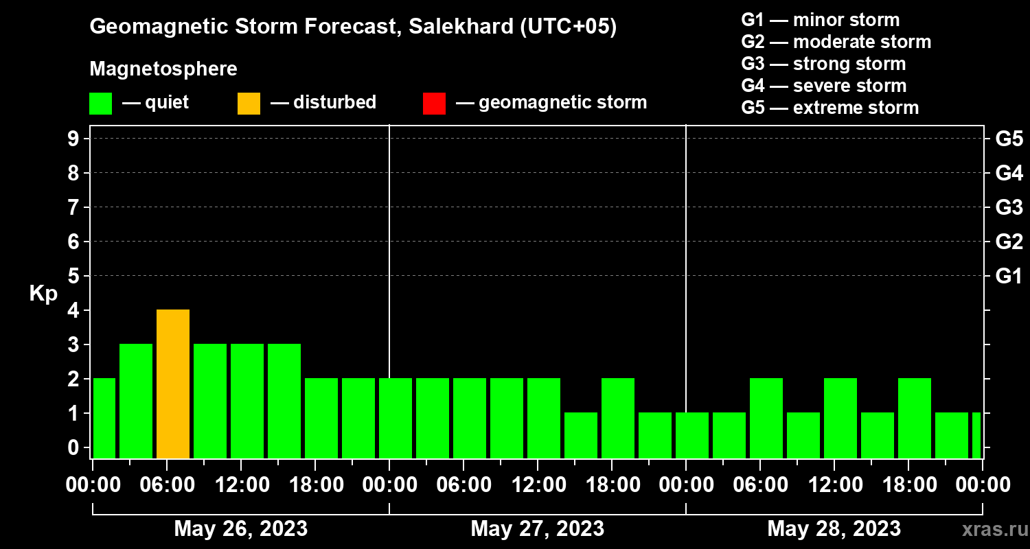 Geomagnetic activity forecast in Salekhard — May 26, 2023