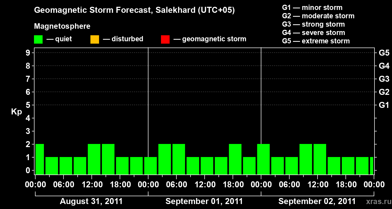 Geomagnetic storm forecast in Salekhard for Aug 31, 2011