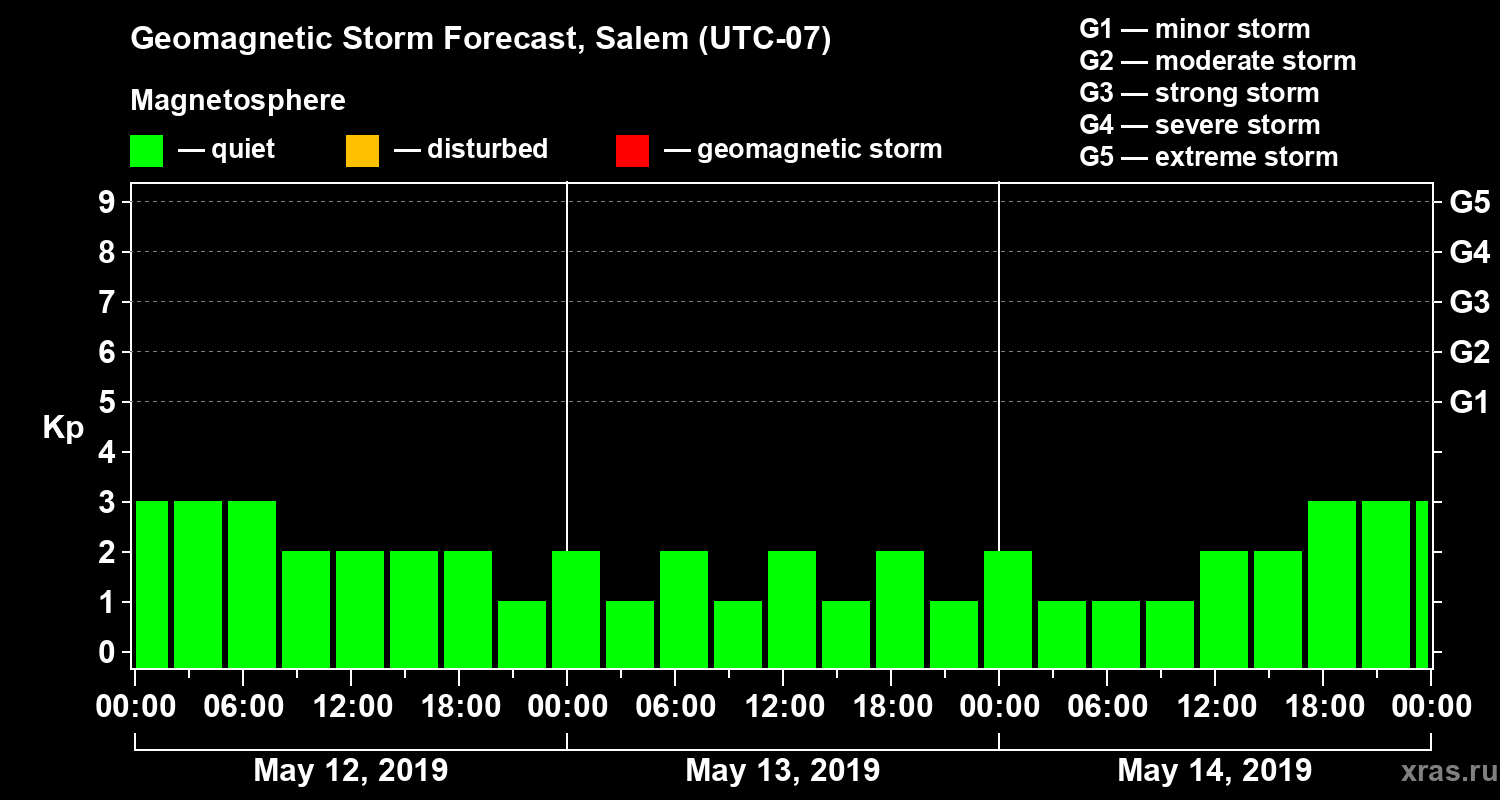 Geomagnetic storm forecast in Salem for May 12, 2019