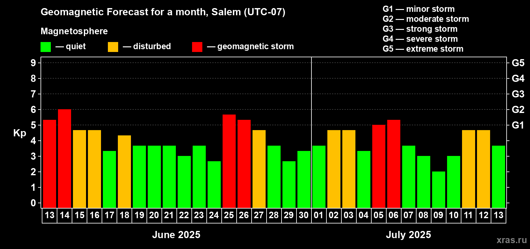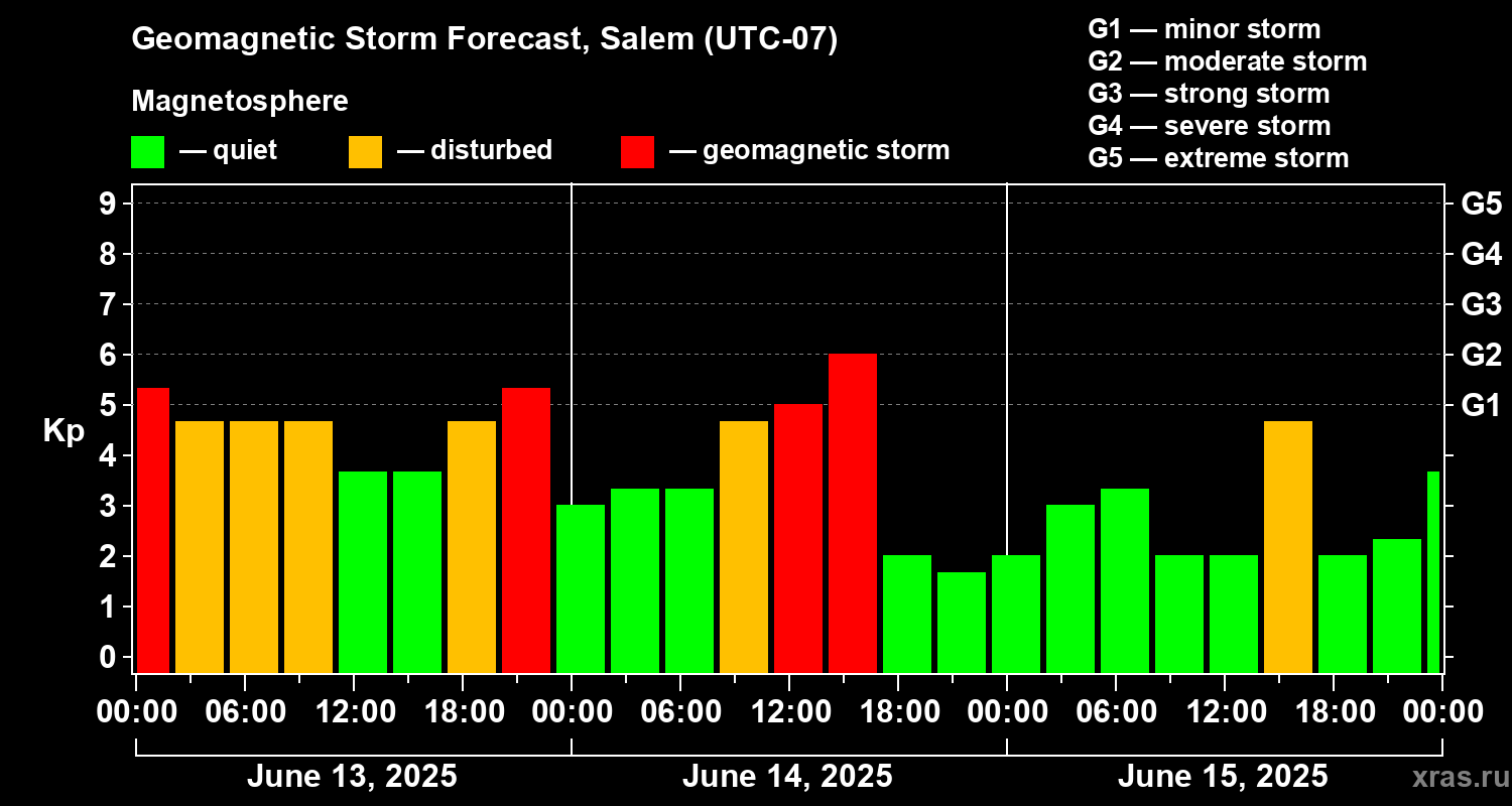 Geomagnetic storm forecast in Salem for Jun 13, 2025