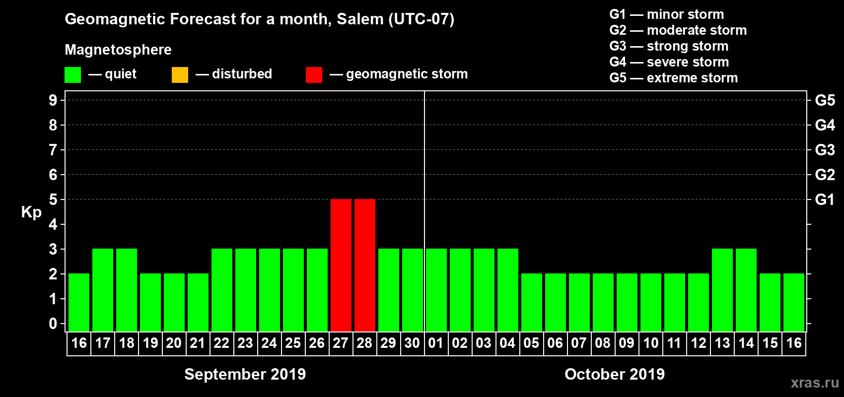 Geomagnetic storm forecast in Salem for Sep 16, 2019