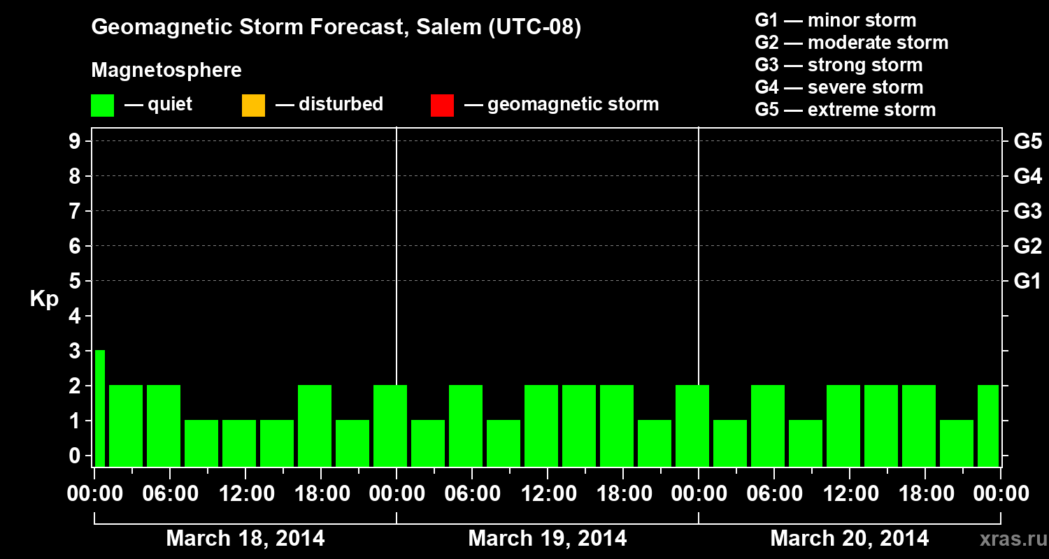 Geomagnetic storm forecast in Salem for Mar 18, 2014