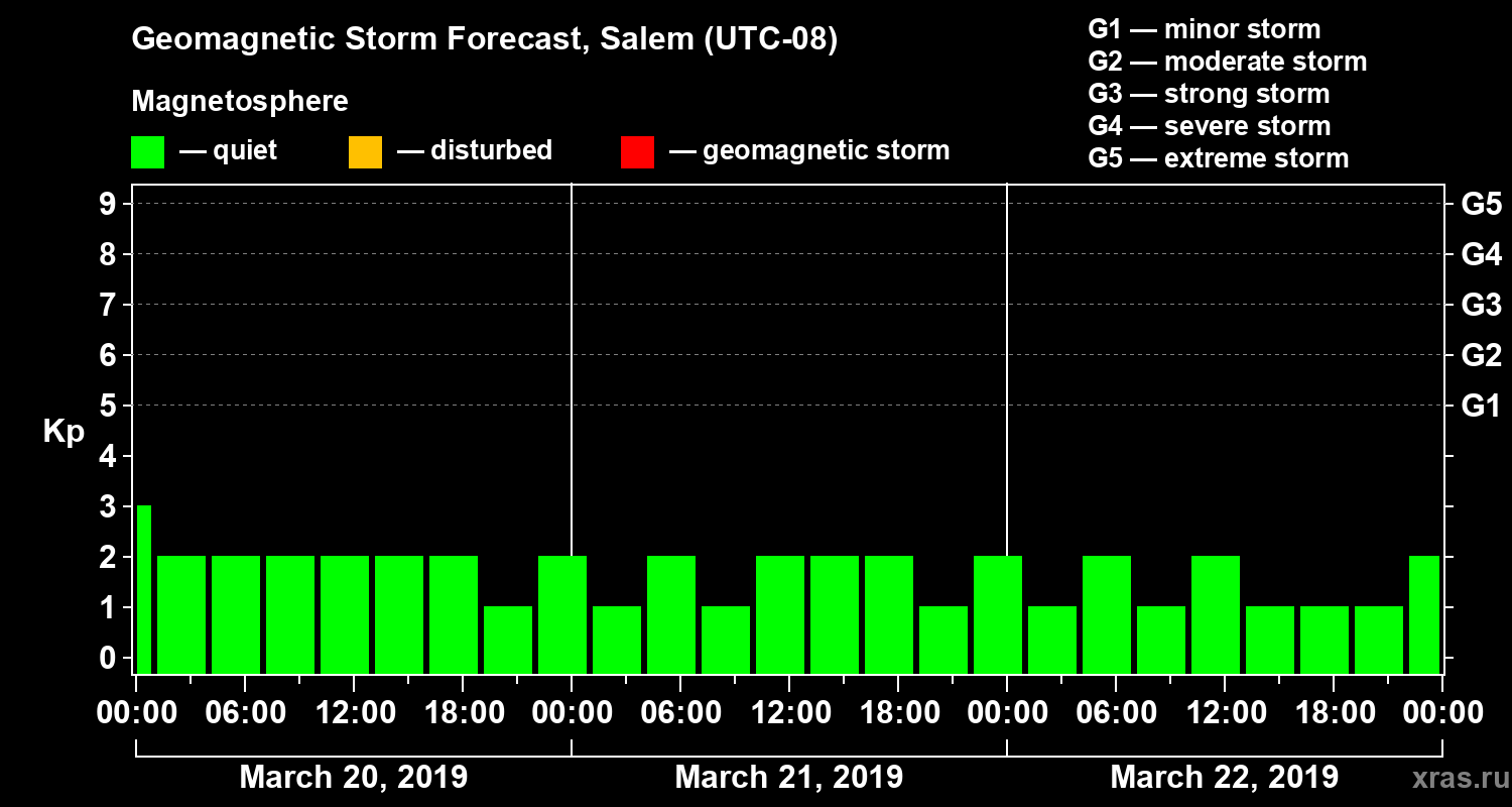 Geomagnetic storm forecast in Salem for Mar 20, 2019