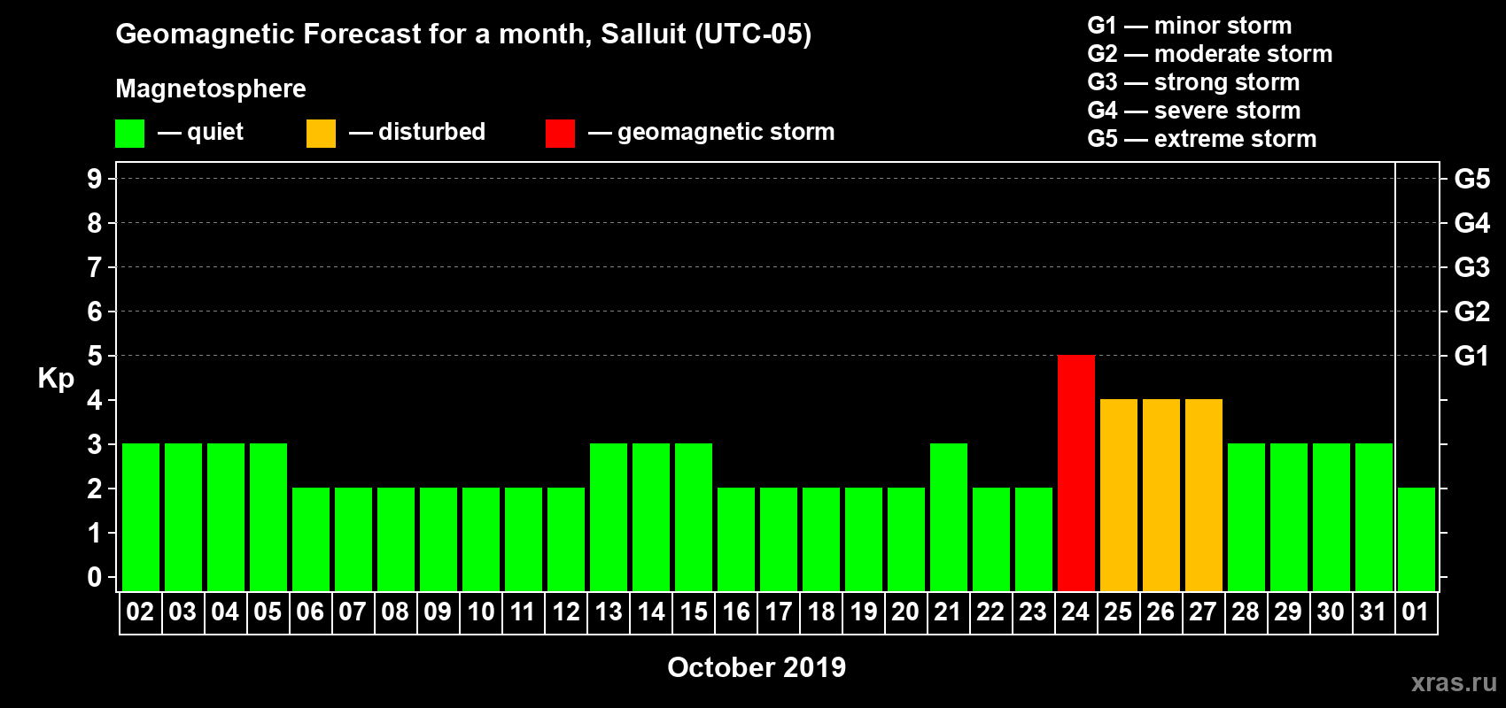 Geomagnetic storm forecast in Salluit for Oct 02, 2019