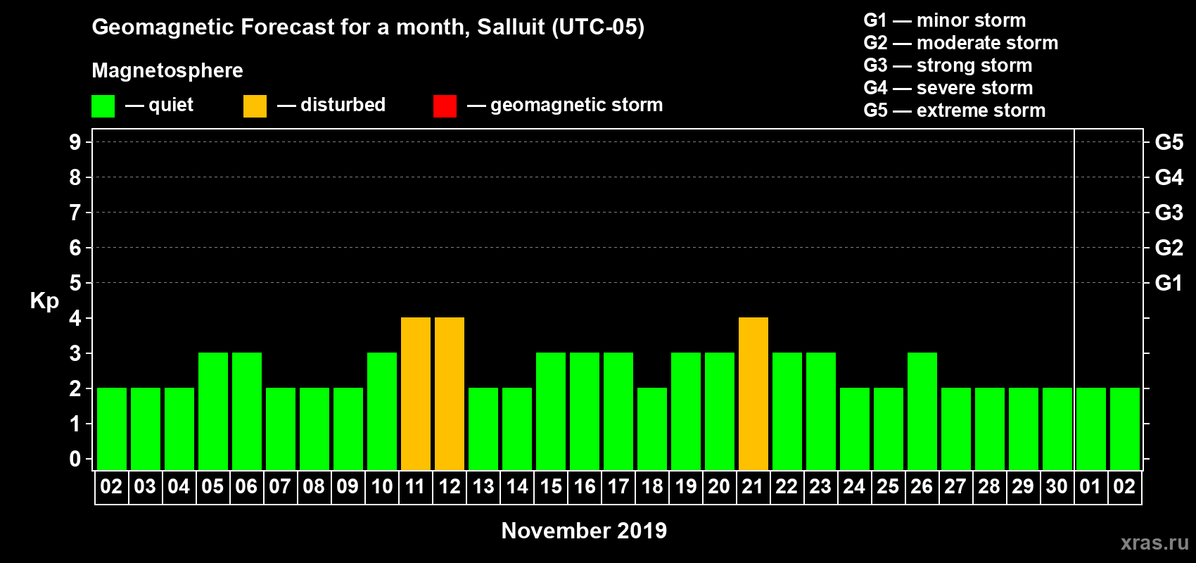 Geomagnetic storm forecast in Salluit for Nov 02, 2019