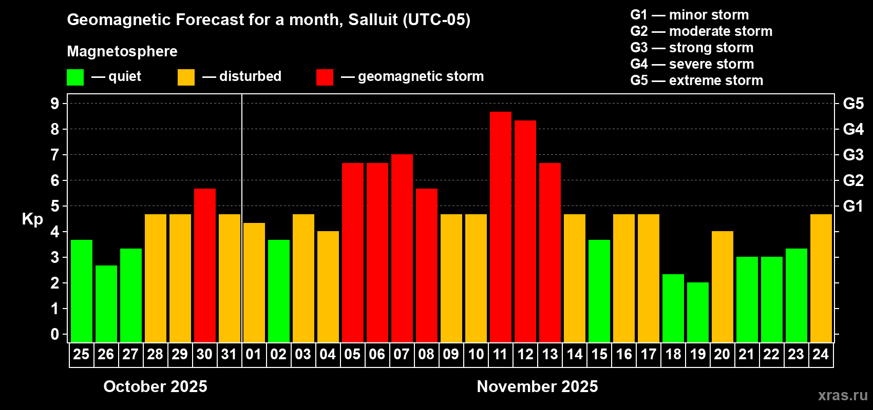Geomagnetic storm forecast in Salluit for Oct 25, 2025