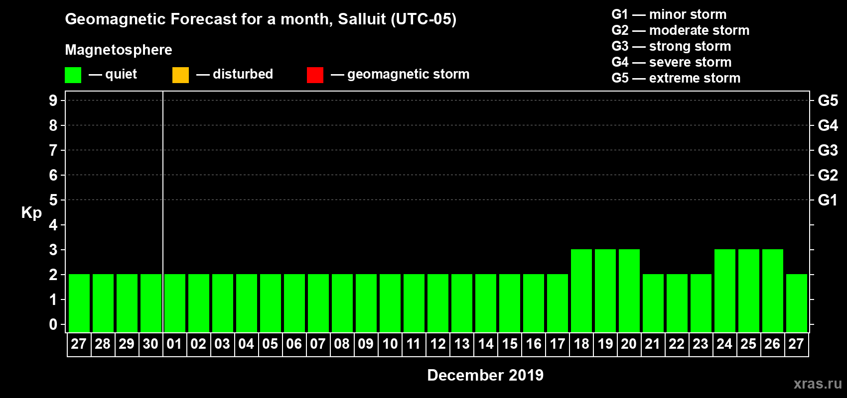 Geomagnetic storm forecast in Salluit for Nov 27, 2019