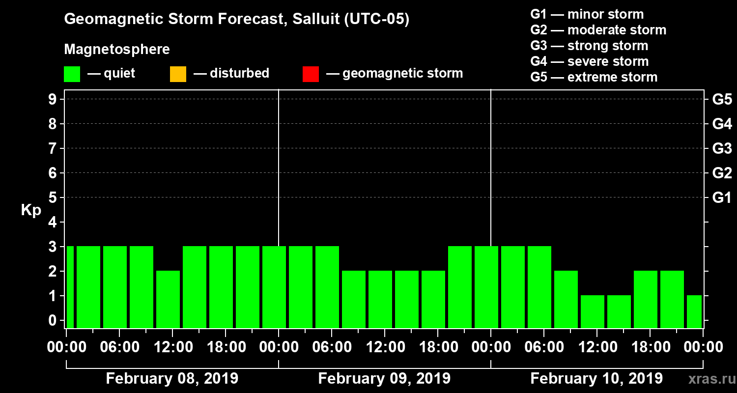 Geomagnetic storm forecast in Salluit for Feb 08, 2019
