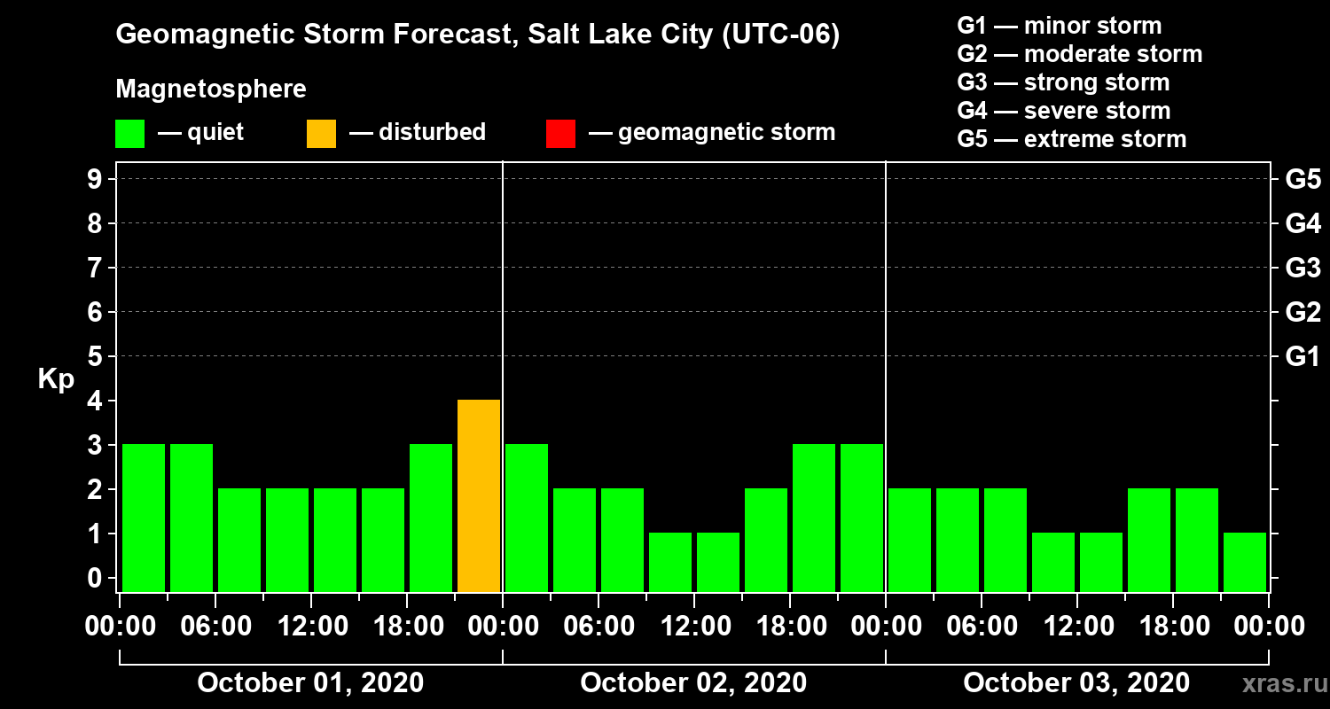 Geomagnetic storm forecast in Salt Lake City for Oct 01, 2020