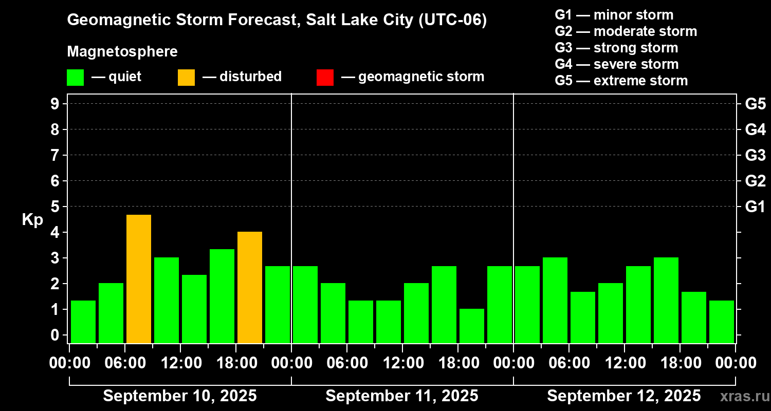 Geomagnetic storm forecast in Salt Lake City for Sep 10, 2025