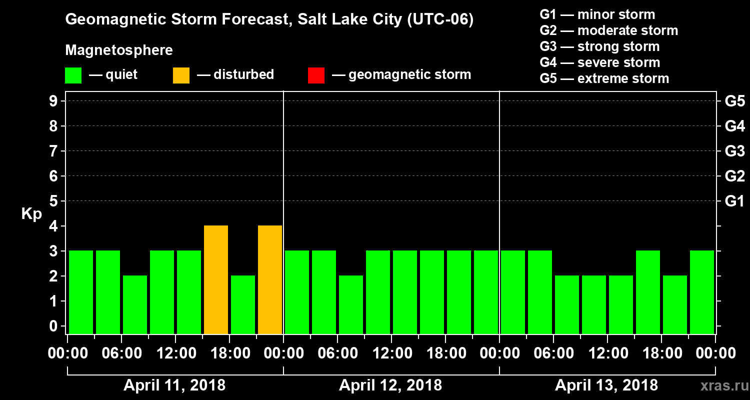 Geomagnetic storm forecast in Salt Lake City for Apr 11, 2018