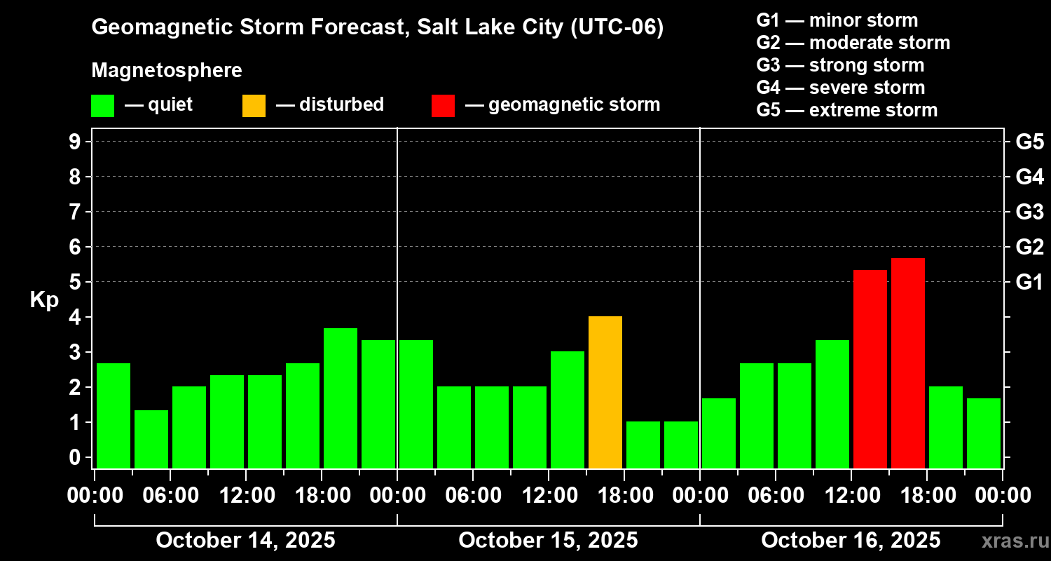 Geomagnetic storm forecast in Salt Lake City for Oct 14, 2025