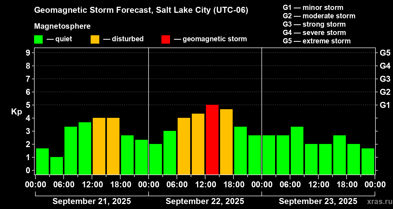 Geomagnetic storm forecast in Salt Lake City for Sep 21, 2025