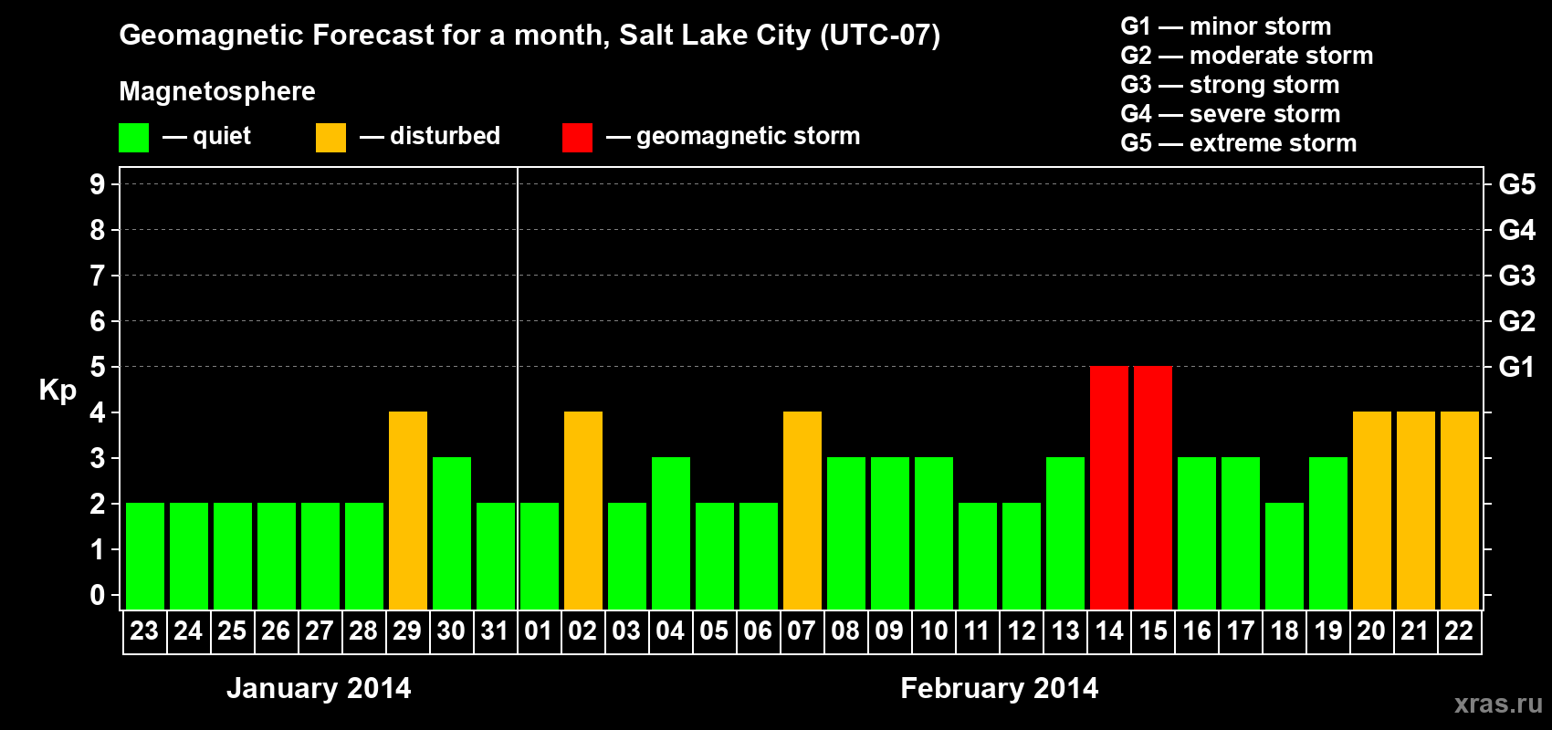 Geomagnetic storm forecast in Salt Lake City for Jan 23, 2014