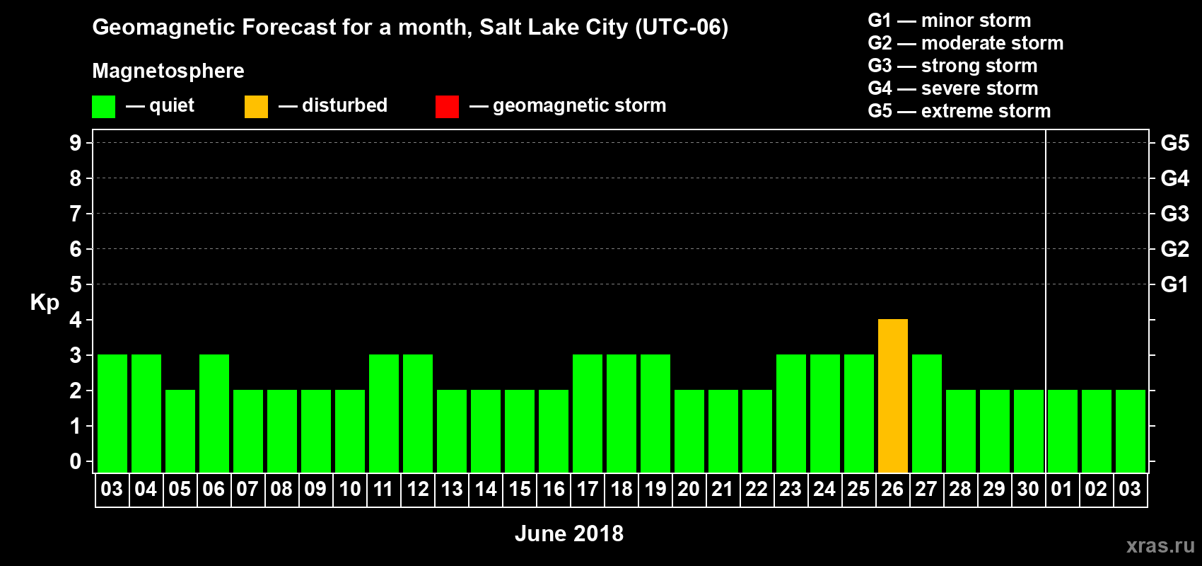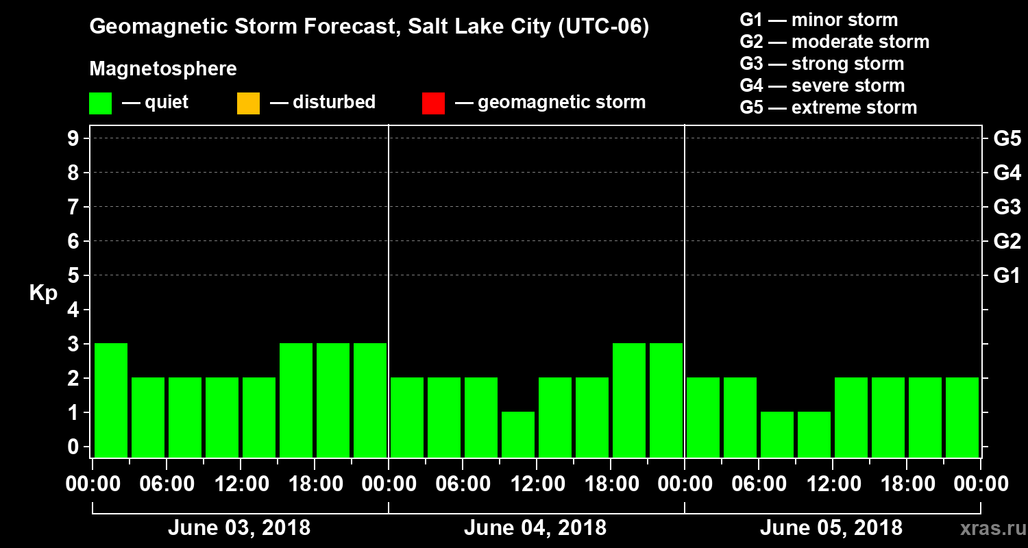 Geomagnetic storm forecast in Salt Lake City for Jun 03, 2018