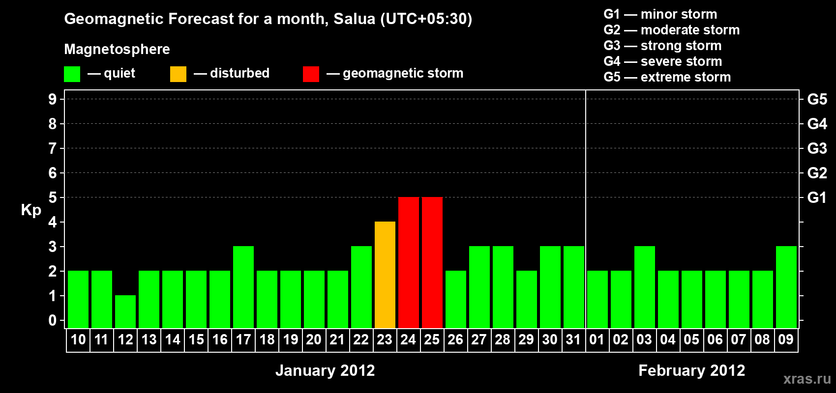 Geomagnetic storm forecast in Salua for Jan 10, 2012