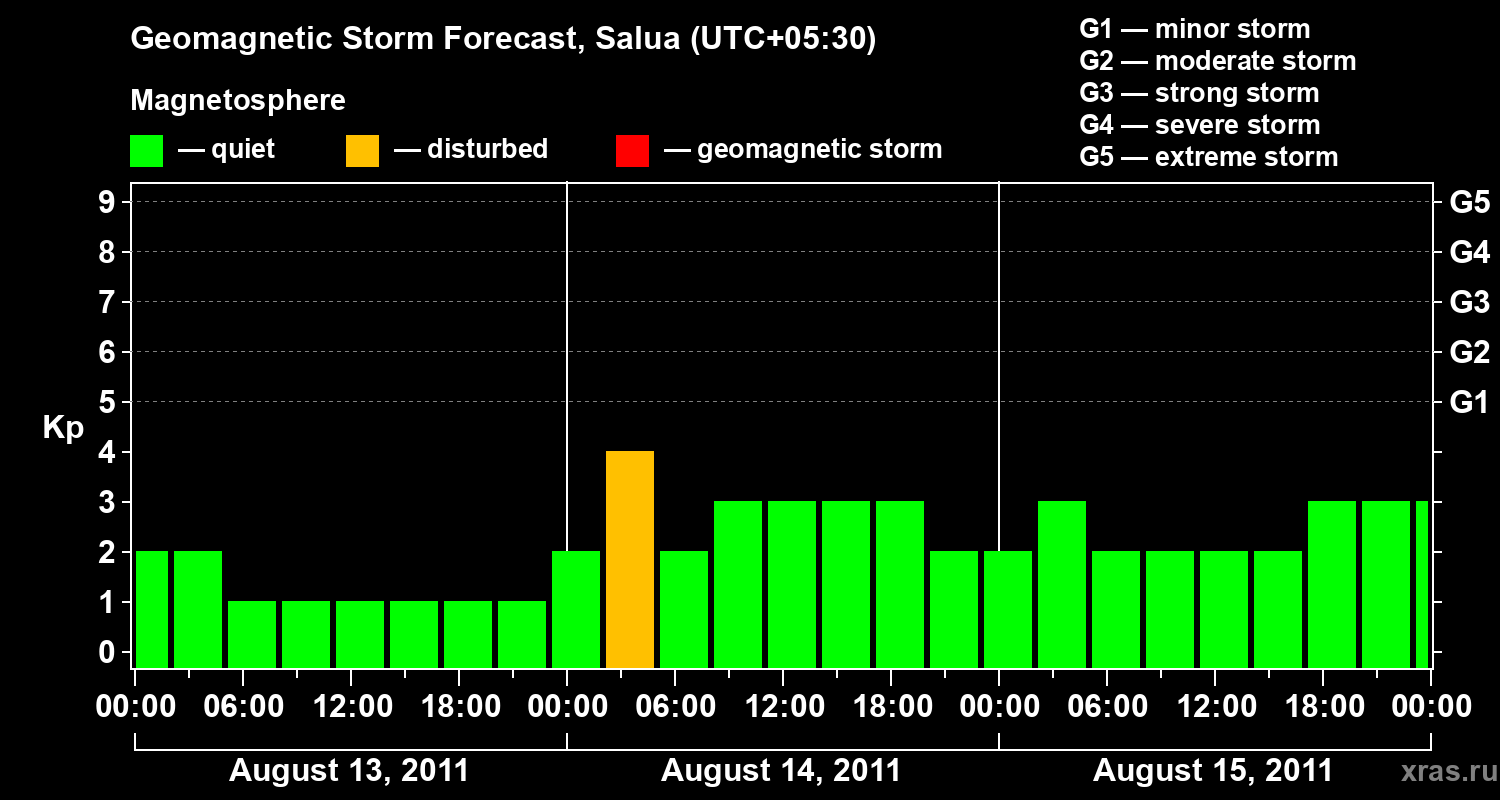 Geomagnetic storm forecast in Salua for Aug 13, 2011
