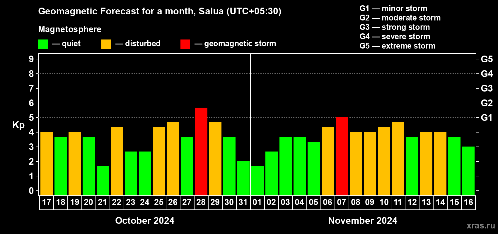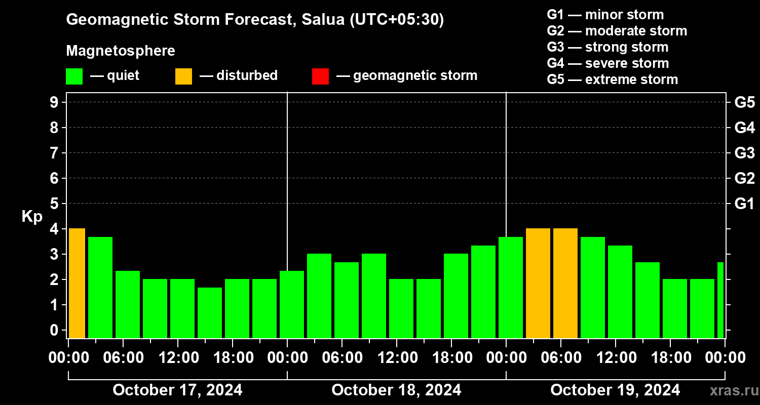 Geomagnetic storm forecast in Salua for Oct 17, 2024