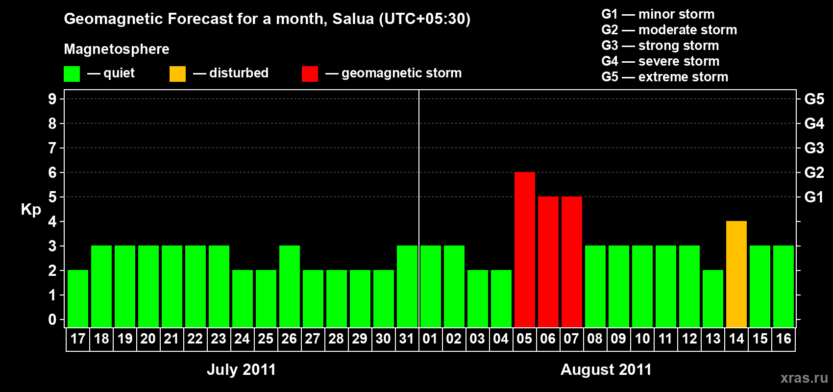 Geomagnetic storm forecast in Salua for Jul 17, 2011
