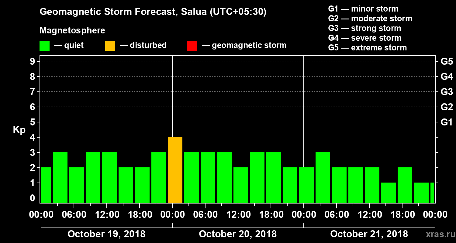 Geomagnetic storm forecast in Salua for Oct 19, 2018