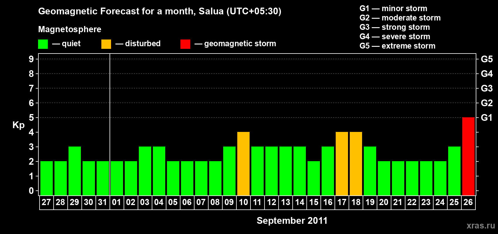 Geomagnetic storm forecast in Salua for Aug 27, 2011