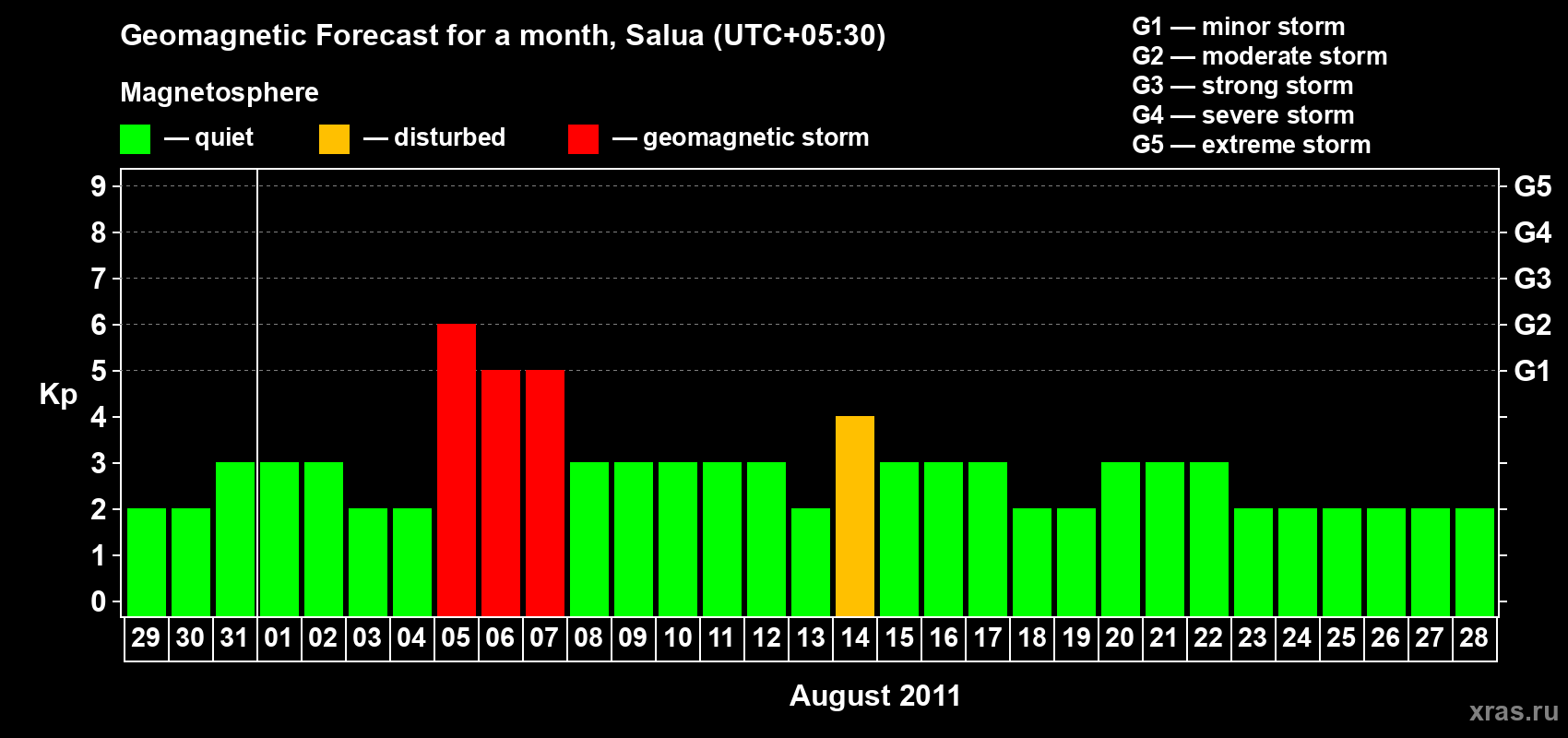 Geomagnetic storm forecast in Salua for Jul 29, 2011