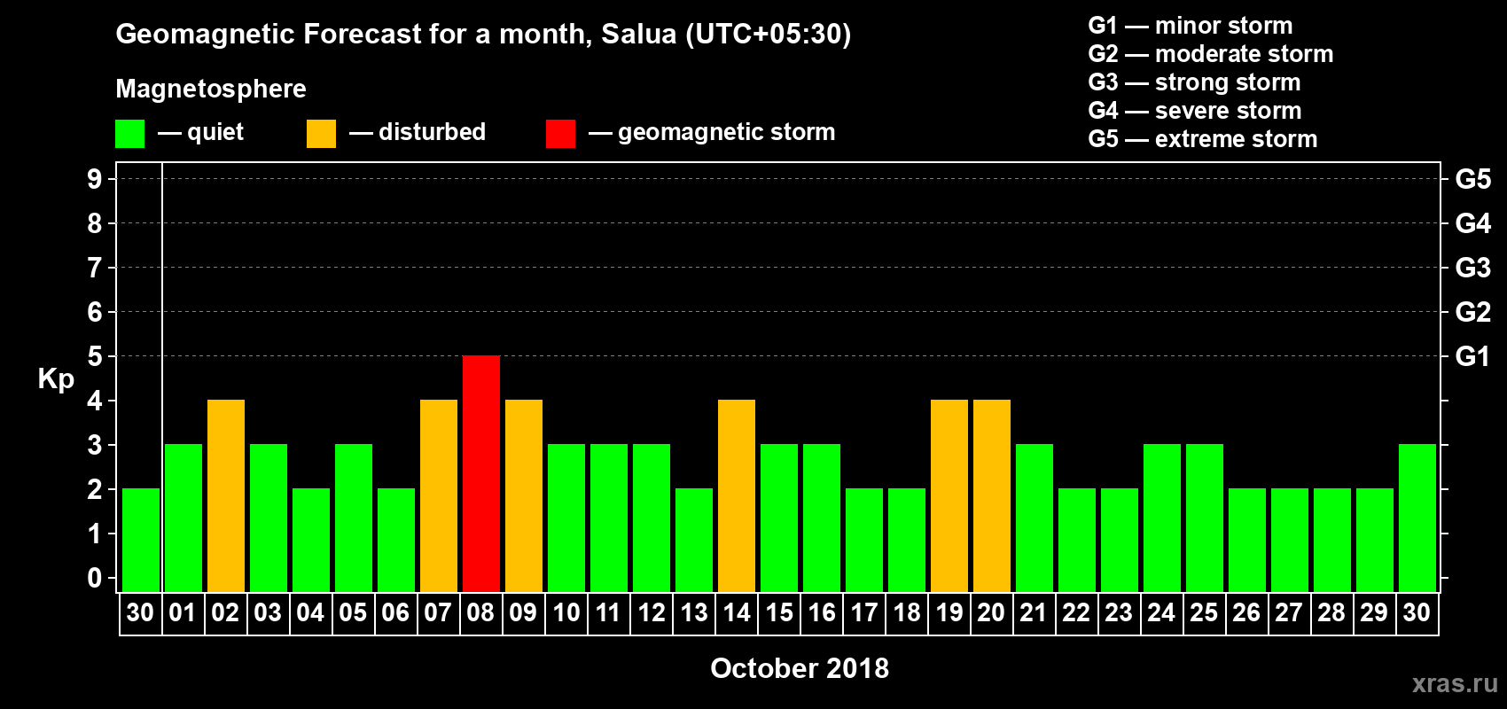 Geomagnetic storm forecast in Salua for Sep 30, 2018